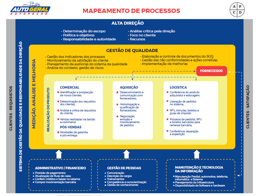 A Auto Geral definiu os seguintes processos em seu Sistema de Gestão, representados no esquema a seguir: