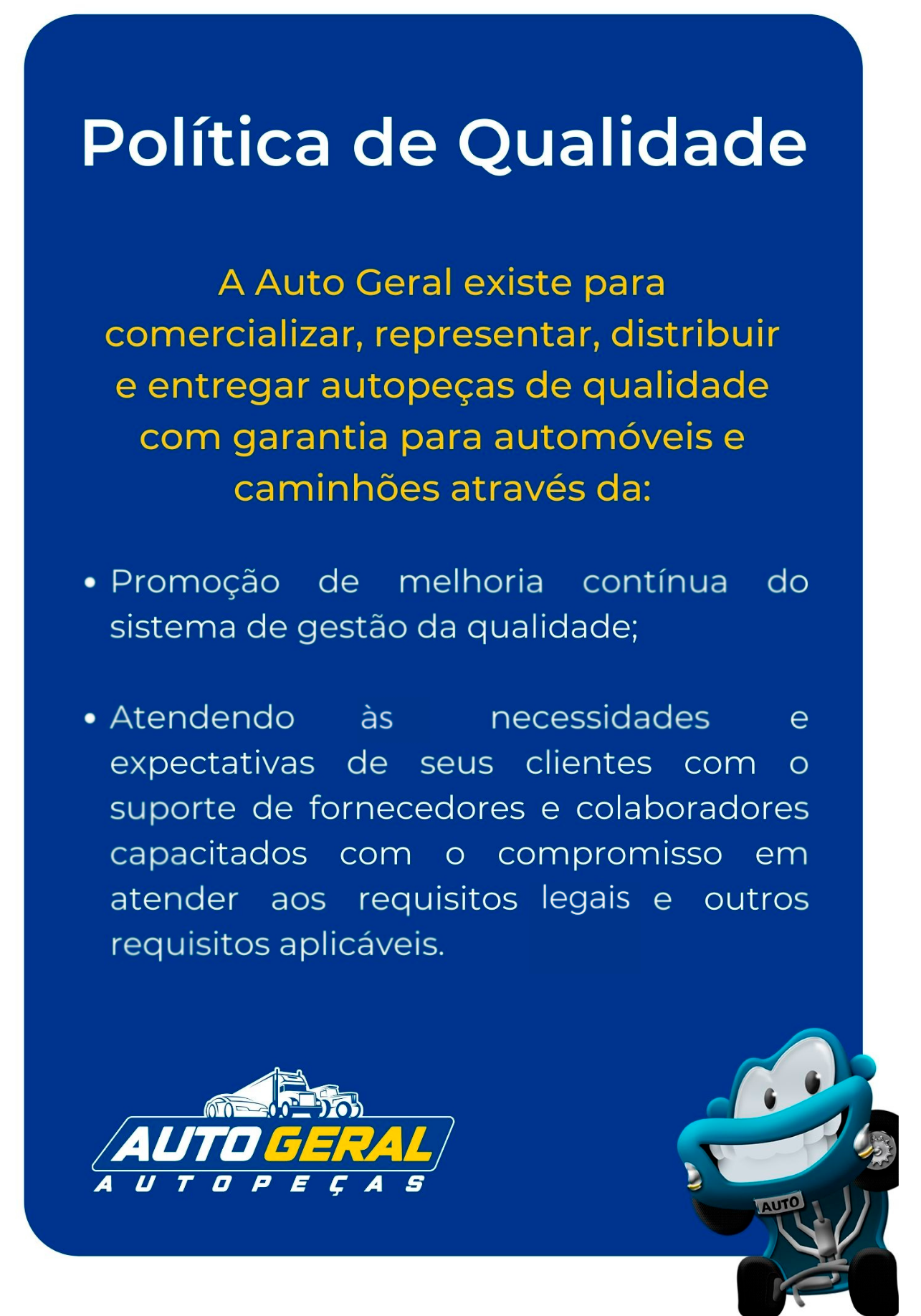 -A Auto Geral prima pela qualidade de seus produtos e a satisfação de seus clientes e colaboradores, mantendo